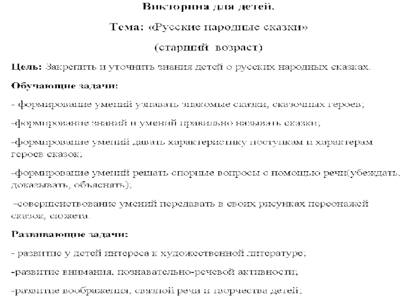 Презентация, доклад викторины по сказкам для детей старшего возраста