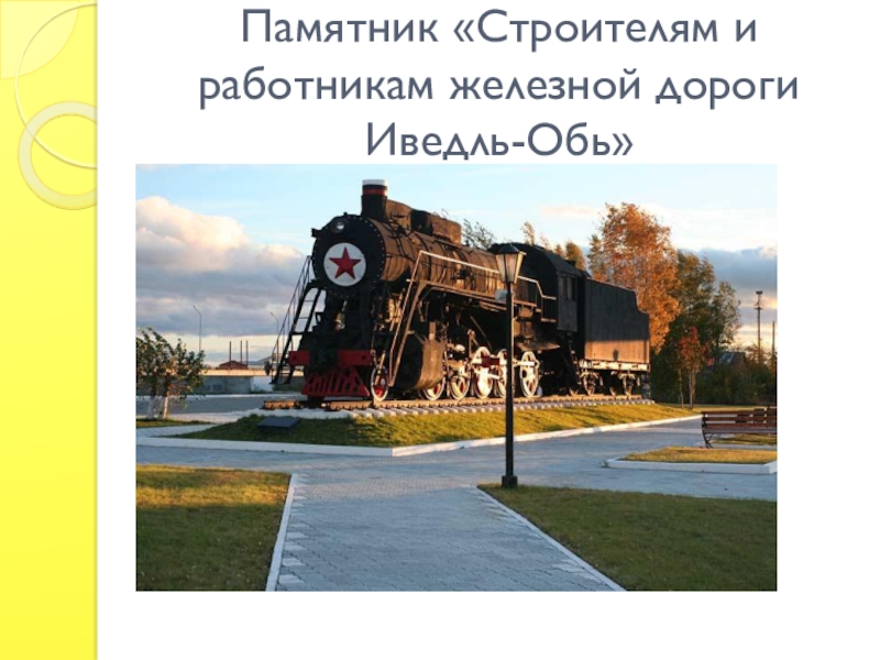 Слайд 8Памятник «Строителям и работникам железной дороги Иведль-Обь»