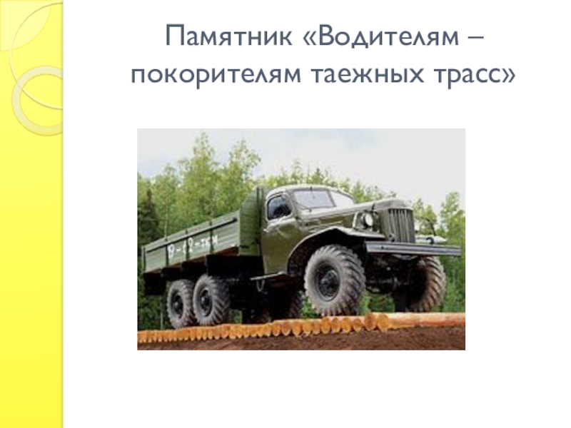 Слайд 9Памятник «Водителям – покорителям таежных трасс»