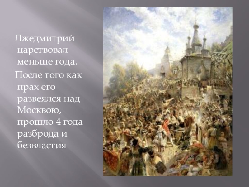 Слайд 8 Лжедмитрий царствовал меньше года.