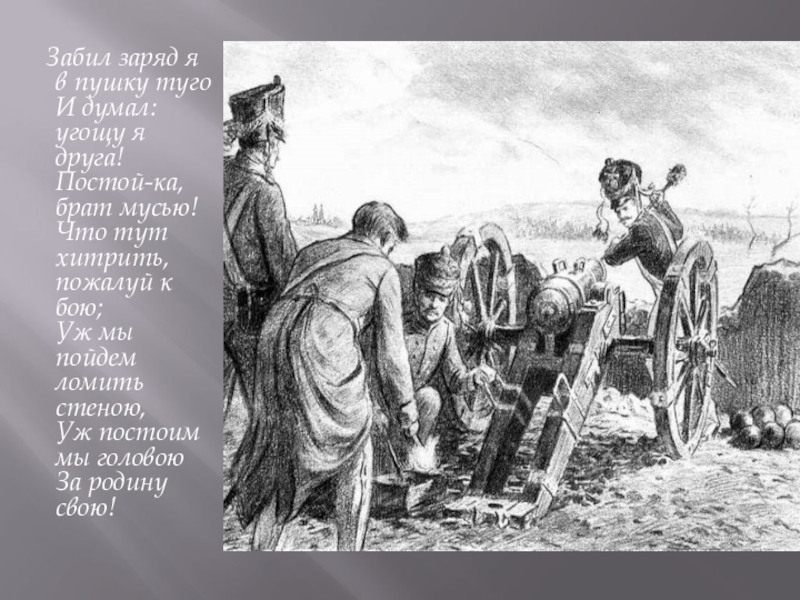 Слайд 28 Забил заряд я в пушку туго