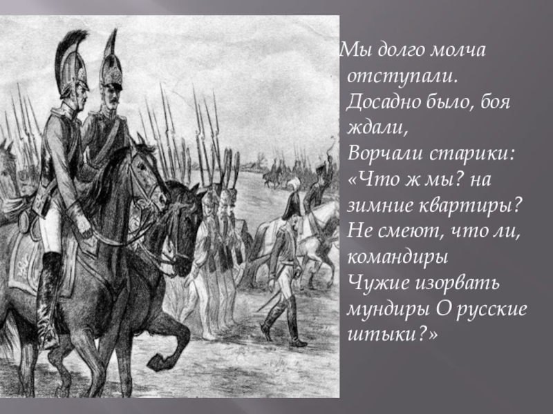 Слайд 26 Мы долго молча отступали.