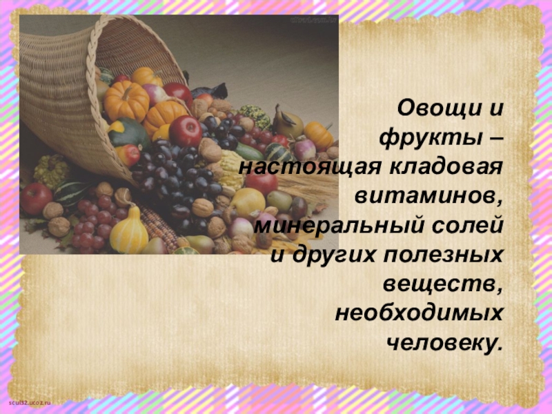 Овощи и фрукты – настоящая кладовая витаминов, минеральный солей и других полезных веществ, необходимых человеку.