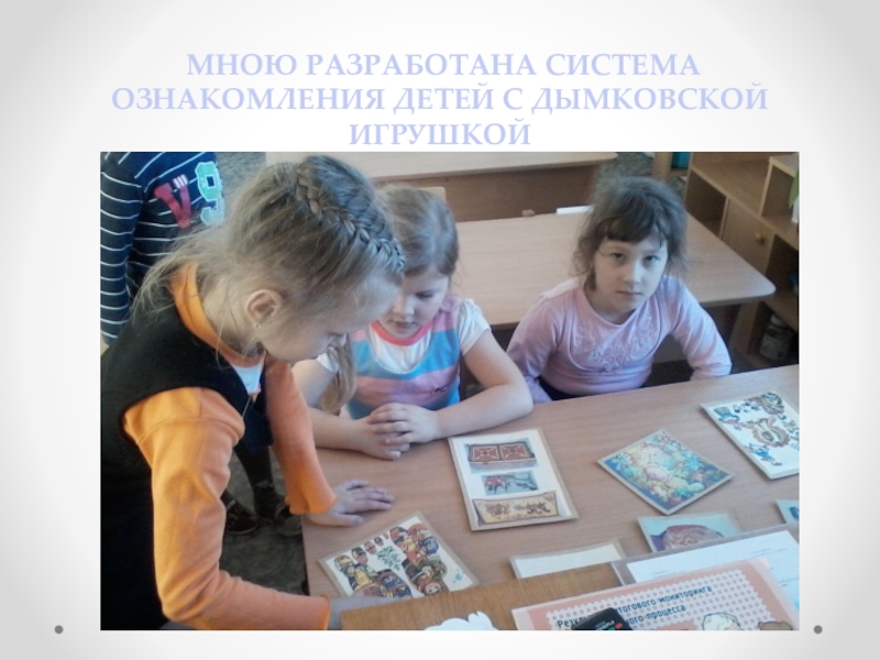 Слайд 6 МНОЮ РАЗРАБОТАНА СИСТЕМА ОЗНАКОМЛЕНИЯ ДЕТЕЙ С ДЫМКОВСКОЙ ИГРУШКОЙ