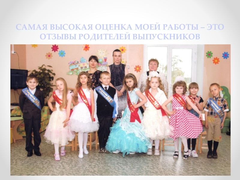 Слайд 10САМАЯ ВЫСОКАЯ ОЦЕНКА МОЕЙ РАБОТЫ – ЭТО ОТЗЫВЫ РОДИТЕЛЕЙ ВЫПУСКНИКОВ