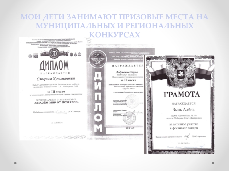 Слайд 9МОИ ДЕТИ ЗАНИМАЮТ ПРИЗОВЫЕ МЕСТА НА МУНИЦИПАЛЬНЫХ И РЕГИОНАЛЬНЫХ КОНКУРСАХ