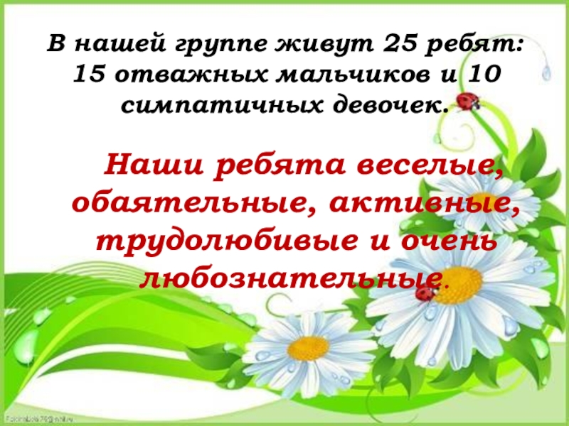 Наши ребята веселые, обаятельные, активные, трудолюбивые и очень любознательные.