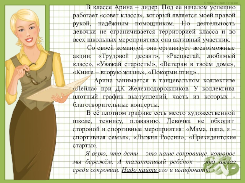 Я полностью доверилась мнению своей учительницы, что пройти все заявленные испытания получится именно у меня.