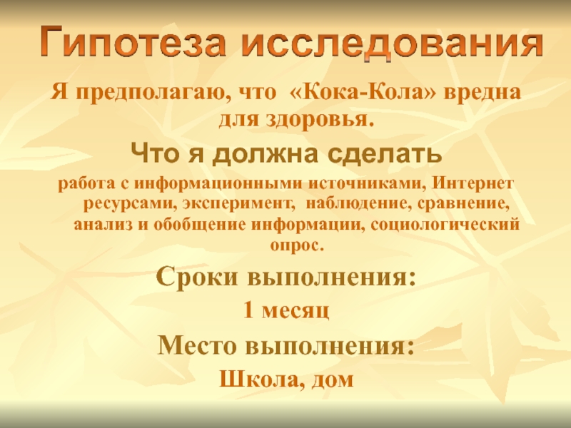 Слайд 5Я предполагаю, что «Кока-Кола» вредна для здоровья.
