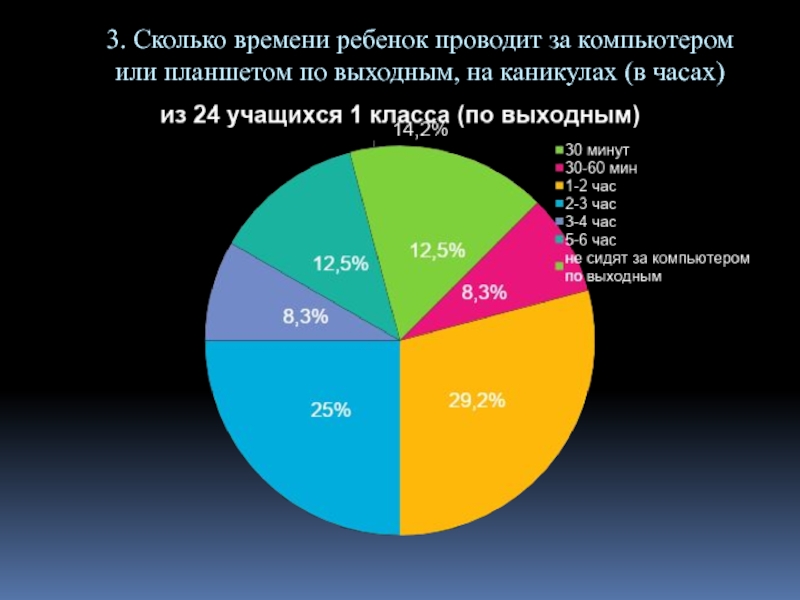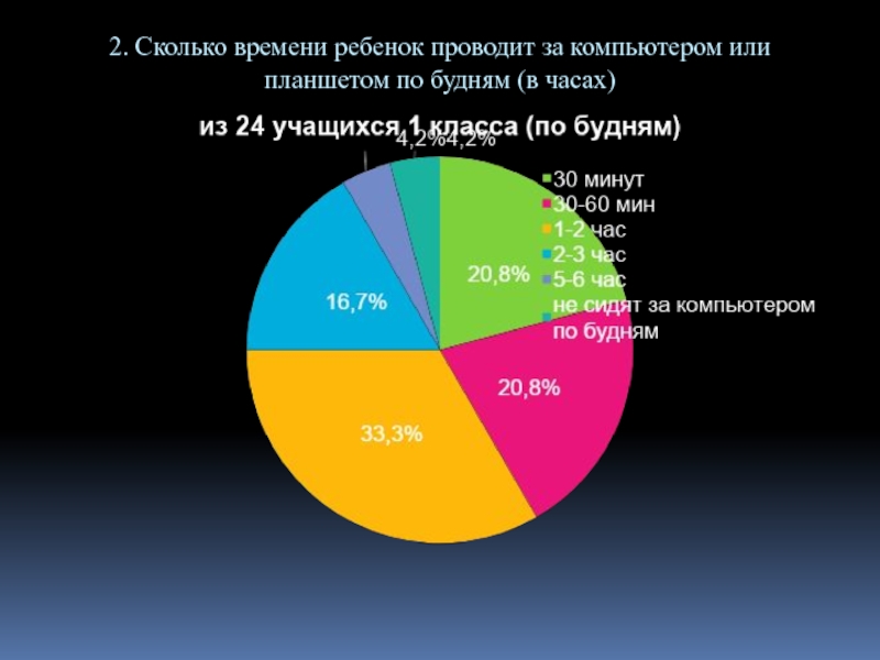 Слайд 82. Сколько времени ребенок проводит за компьютером или планшетом по будням