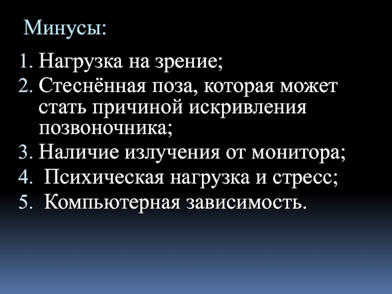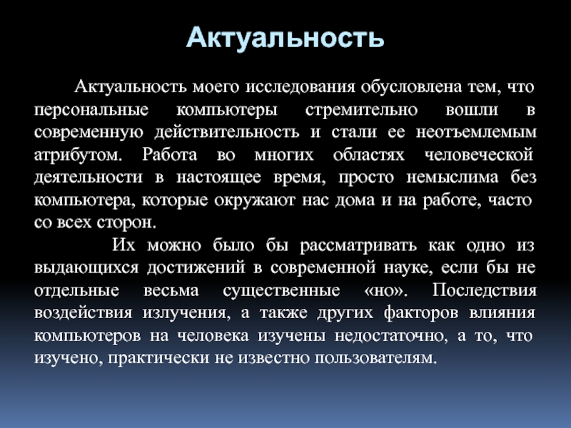 Их можно было бы рассматривать как одно из выдающихся достижений в современной науке, если бы не отдельные весьма существенные «но». Последствия воздействия излучения, а также других факторов влияния компьютеров на человека изучены недостаточно, а то, что изучено, практически не известно пользователям.