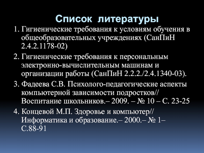 4. Концевой М.П. Здоровье и компьютер// Информатика и образование.– 2000.– № 1– С.88-91