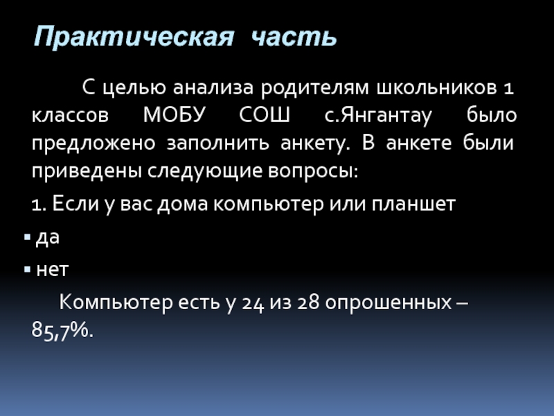 Компьютер есть у 24 из 28 опрошенных – 85,7%.