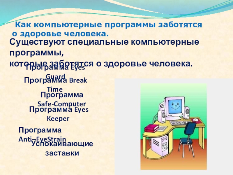 Чтобы длительная работа на компьютере не привела к возникновению этих синдромов, достаточно выполнять несложные рекомендации по организации своего рабочего места и режима работы: