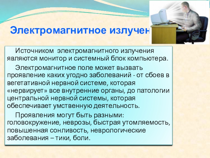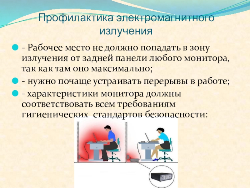 Источником электромагнитного излучения являются монитор и системный блок компьютера.