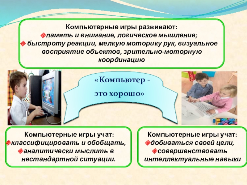 Каждым благом нужно уметь пользоваться. Это требование в полной мере относится и к компьютеру. Детям предстоит жить в компьютеризированном обществе. Поэтому необходимо обучать
