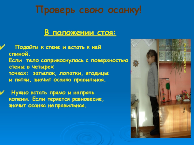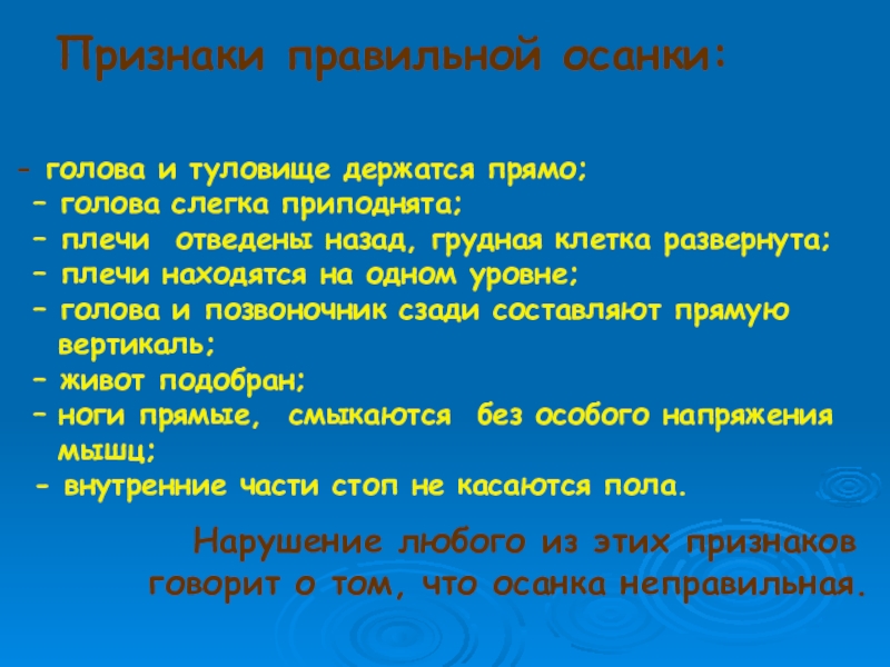 Признаки правильной осанки: