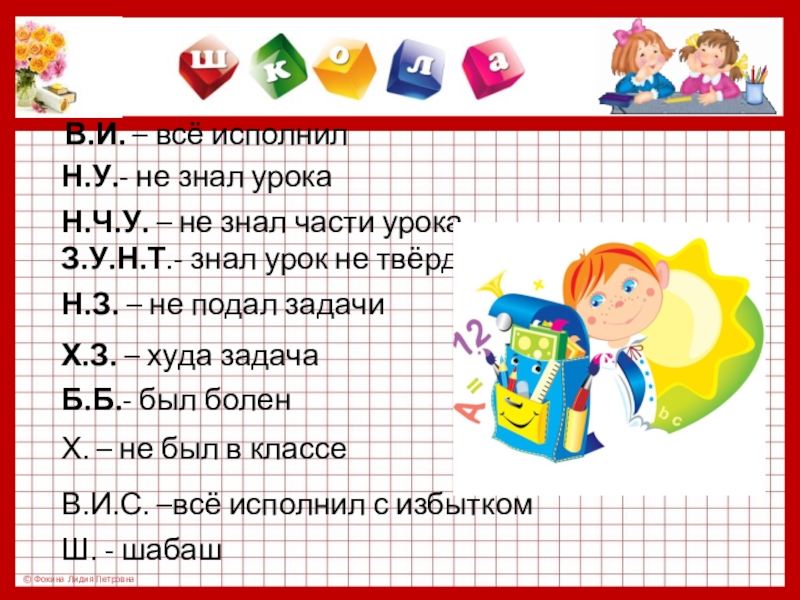 Это сайт презентаций, где можно хранить и обмениваться своими презентациями, докладами, проектами, шаблонами в формате PowerPoint с другими пользователями. Мы помогаем школьникам, студентам, учителям, преподавателям хранить и обмениваться учебными материалами.