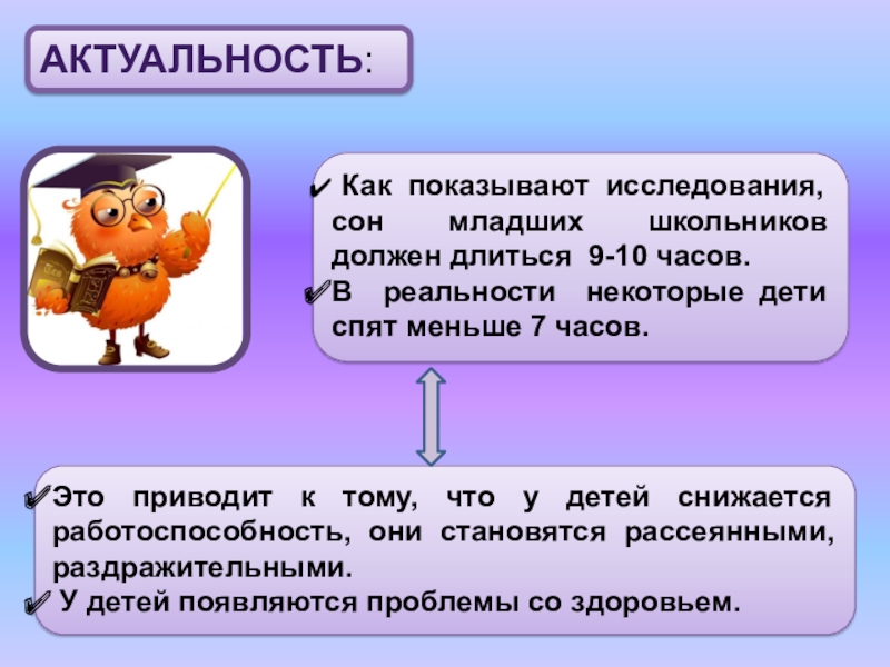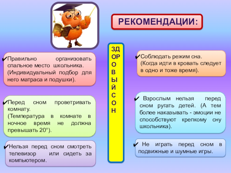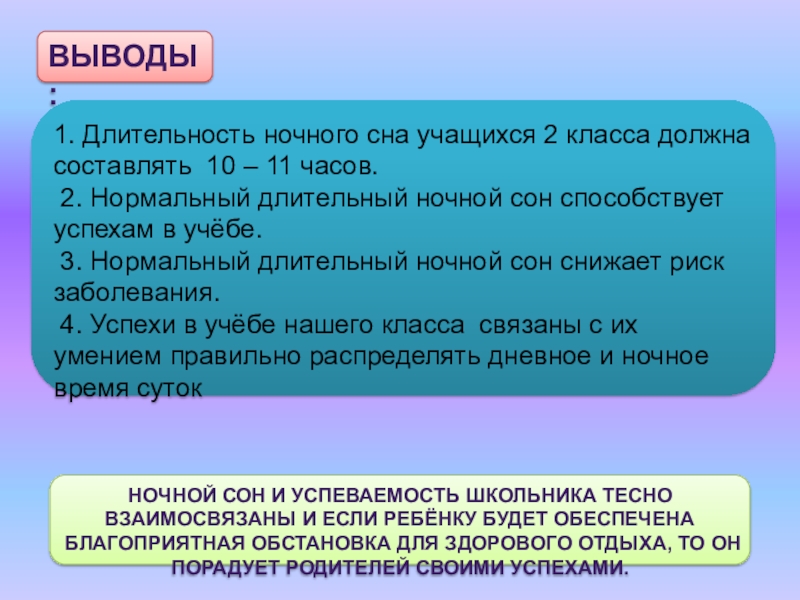 Ночной сон и успеваемость школьника тесно взаимосвязаны и если ребёнку будет обеспечена благоприятная обстановка для здорового отдыха, то он порадует родителей своими успехами.