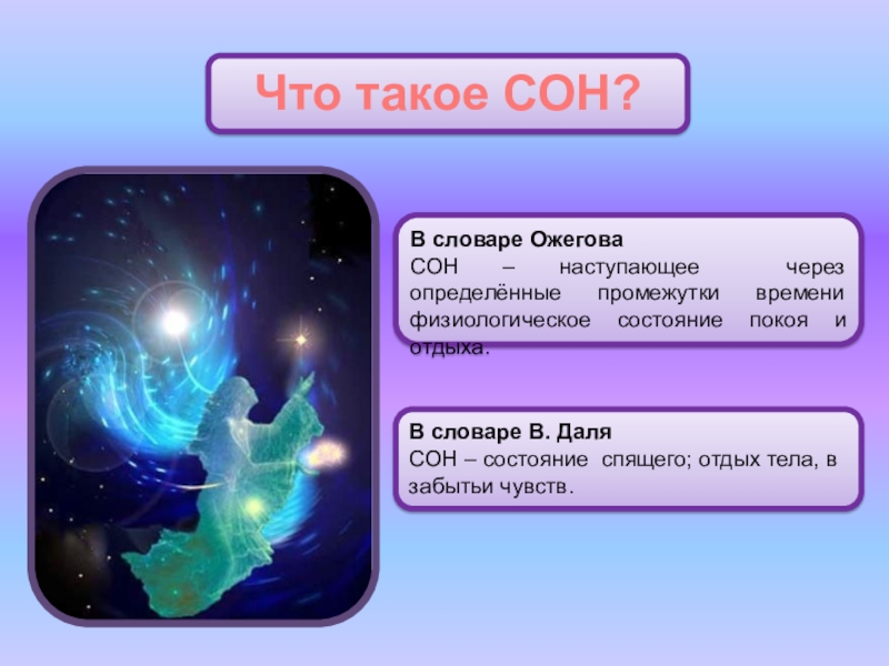 СОН – состояние спящего; отдых тела, в забытьи чувств.