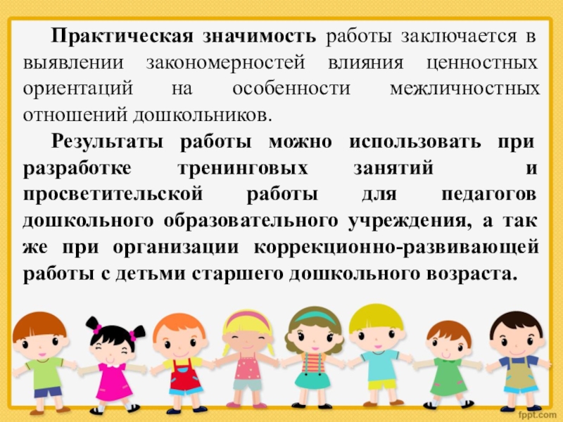 Слайд 8Практическая значимость работы заключается в выявлении закономерностей влияния ценностных ориентаций на