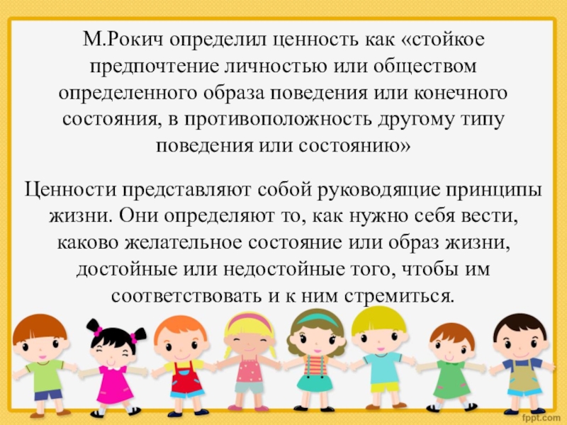 Слайд 9М.Рокич определил ценность как «стойкое предпочтение личностью или обществом определенного образа