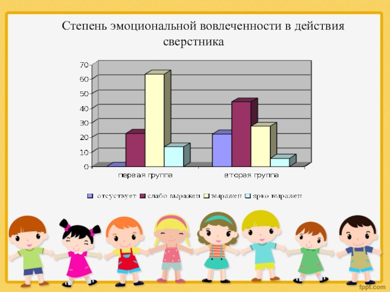 Слайд 23Степень эмоциональной вовлеченности в действия сверстника