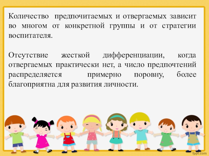 Отсутствие жесткой дифференциации, когда отвергаемых практически нет, а число предпочтений распределяется примерно поровну, более благоприятна для развития личности.
