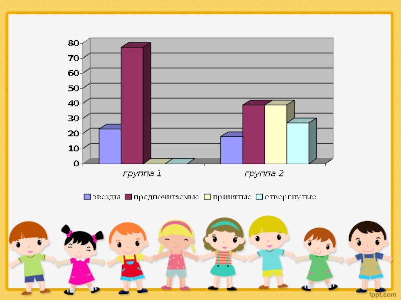 конформистские и самоутверждения, можно увидеть яркое разделение детей на звезд, предпочитаемых, принятых и непринятых, практически четверть детей неприняты в этой группе, более половины детей имеет неблагоприятный социометрический статус.