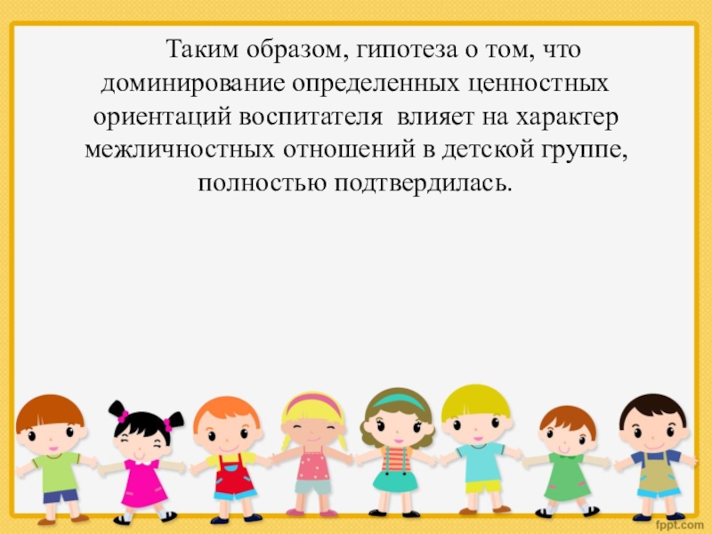 Слайд 30Таким образом, гипотеза о том, что доминирование определенных ценностных ориентаций воспитателя