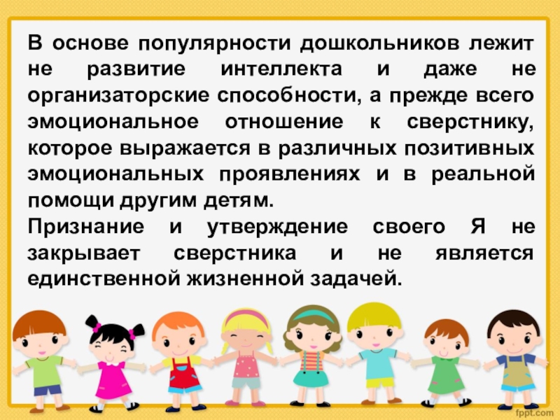 Слайд 16В основе популярности дошкольников лежит не развитие интеллекта и даже не