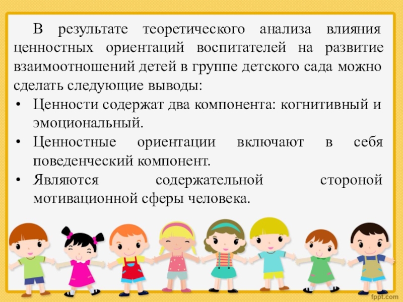 Слайд 13В результате теоретического анализа влияния ценностных ориентаций воспитателей на развитие взаимоотношений