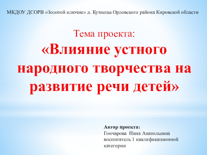 «Влияние устного народного творчества на развитие речи детей»