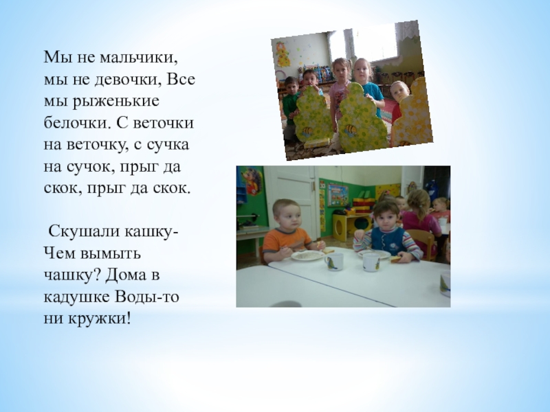 Слайд 13Мы не мальчики, мы не девочки, Все мы рыженькие белочки. С