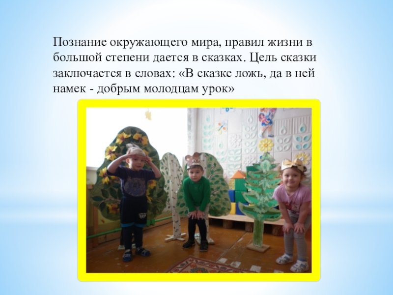 Слайд 7Познание окружающего мира, правил жизни в большой степени дается в сказках.