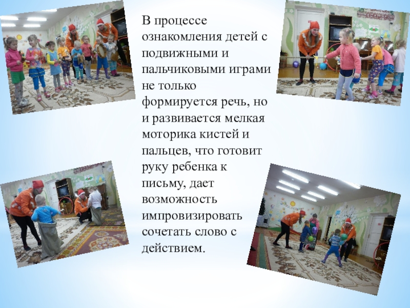 Слайд 17В процессе ознакомления детей с подвижными и пальчиковыми играми не только