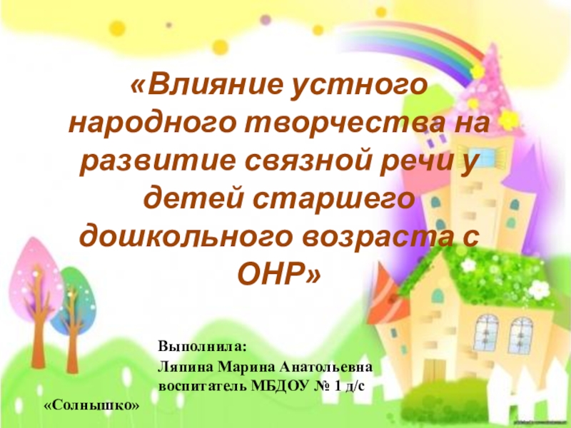 воспитатель МБДОУ № 1 д/с «Солнышко»