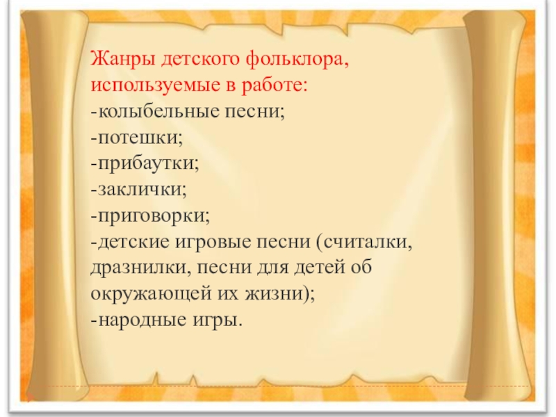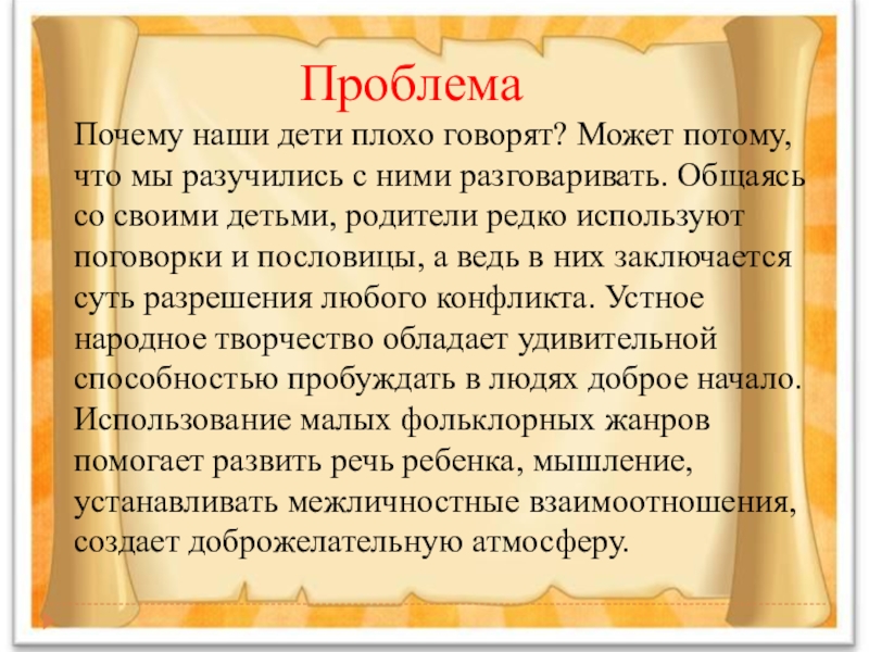 Использование в работе с детьми устного народного творчества создает уникальные условия для развития речи, мышления детей, мотивации поведения, накопления положительного морального опыта в межличностных отношениях.