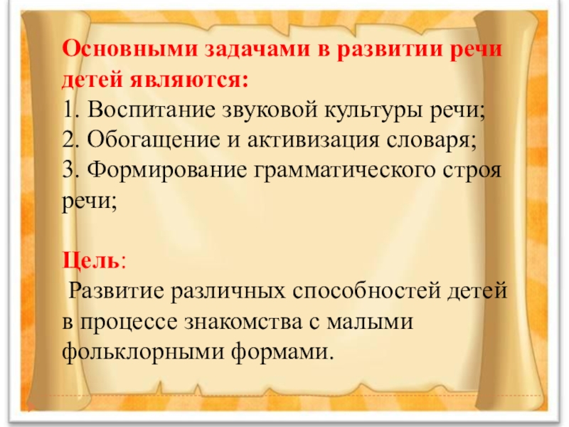 Применение в детском саду русского фольклора позволяет детям приобретать необходимые умения и навыки для использования их в речевом общении, театрализованных, сюжетных играх.