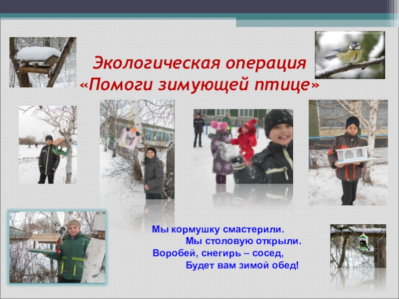 Слайд 11Экологическая операция «Помоги зимующей птице»