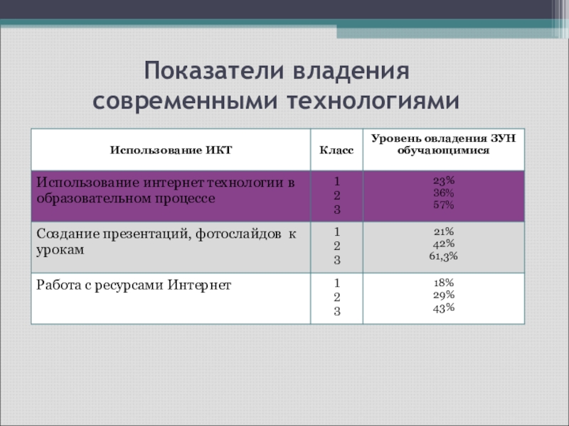 Показатели владения современными технологиями