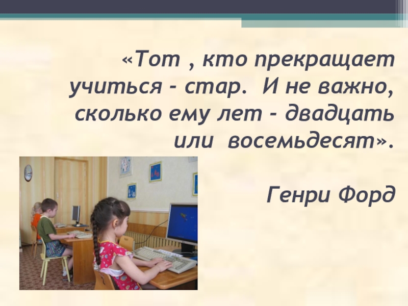 Слайд 8«Тот , кто прекращает учиться - стар. И не важно, сколько