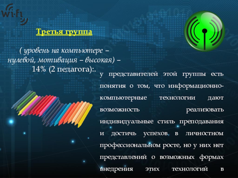 ( уровень на компьютере – нулевой, мотивация – высокая) – 14% (2 педагога):.