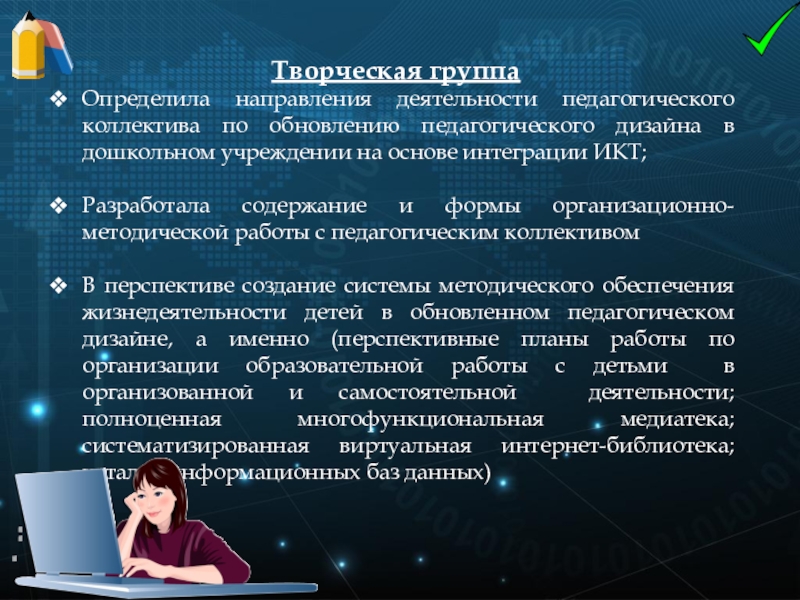Развитие креативности, навыков по адаптированности и инновационности;