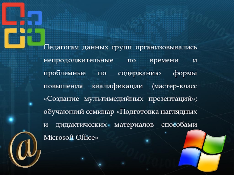 Интернет и информационно - коммуникативние технологии занимают особенное место в современном мире. Навыки владения компьютером, использование информационных и коммуникативных технологий в повседневной работе, умение использовать возможности сети Интернет – такая реальность сегодняшнего дня