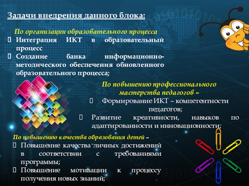 внедрение ИКТ в образовательный процесс;