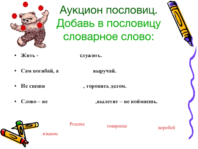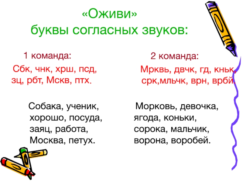 Мрквь, двчк, гд, кньк, срк,мльчк, врн, врбй.