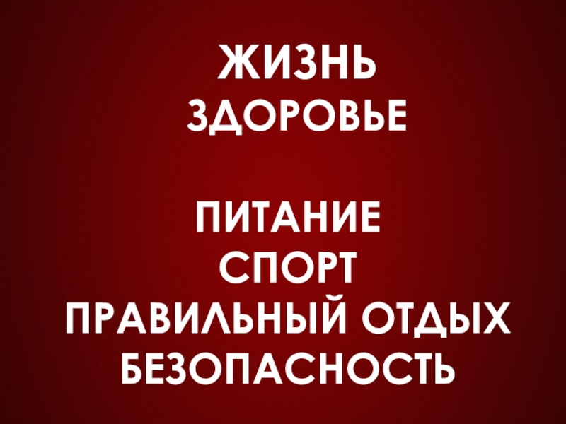 ЖИЗНЬ  ЗДОРОВЬЕПитание спорт Правильный отдыхбезопасность