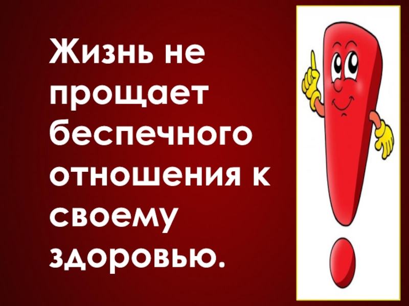 Слайд 20Жизнь не прощает беспечного отношения к своему здоровью.