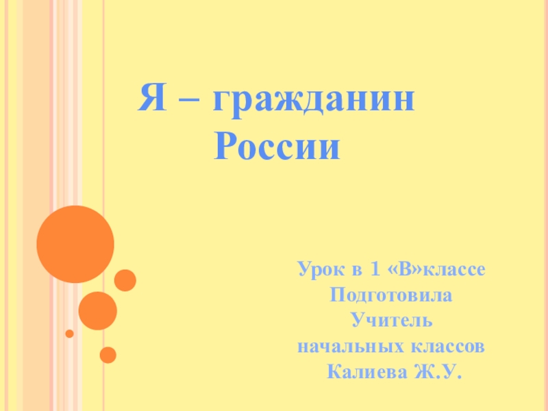 Я – гражданин РоссииУрок в 1 «В»классеПодготовилаУчитель начальных классов Калиева Ж.У.